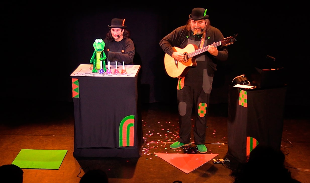 Un espectáculo de poesía visual encarnada en teatro, música, marionetas, cuentos y juegos.